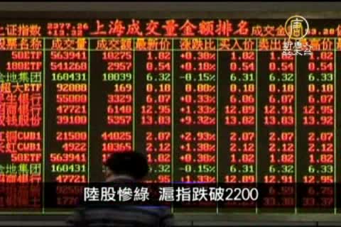 上海證券交易所綜合指數週四收盤前一路下殺、最後失守2200點關卡,創下近5個月來新低。上證指數連續6個交易日收黑,上半年又只剩明天1個交易日,上證指數眼看幾乎要回到年初2132點的階段新低。