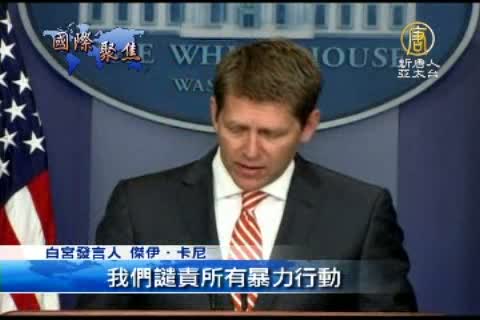 白宮發言人傑伊.卡尼(Jay Carney):「我們譴責所有暴力行動。包括那些以反政權為目標的行為。我們要所有黨派停止敵視。」