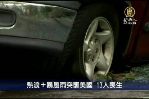 【新唐人亞太台2012年7月1日訊】美國東部地區30號遭到強烈風暴的襲擊,大雷雨造成從印第安納州到新澤西州的大片地區有350萬人無電可用,至少13人喪生。而在此之前,熱浪使氣溫升到攝氏40度以上,在阿肯色、密蘇里和田納西等州也造成5人死亡 。