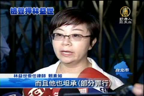 【新唐人亞太台2012年7月2日訊】前行政院秘書長林益世,涉嫌收賄貪污,昨天(1日)下午,林益世與彭愛佳夫妻兩人,遭特偵組約談到案,檢方漏夜偵訊,今天(2日)凌晨4點,林益世認罪,遭特偵組以涉嫌貪污罪,有串證滅證,且為5年以上重罪為由,向台北地方法院提起羈押聲請。