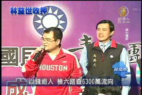 【新唐人亞太台2012年7月4日訊】林益世向特偵組坦承收賄6300萬,但是,對於賄款流向,始終交代不清,檢方懷疑,林益世可能以海外帳戶,用來存放賄款,因此,昨天(3日)兵分六路,同步調閱林益世親友的銀行帳戶,希望透過「以錢追人」的方式,瞭解是否還有更多人,涉及這一起收賄案。