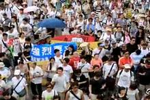 2014-07-02 21:18:46今年七一大遊行,港人的抗共氣氛高漲,儘管,中共阻撓中國百姓參加遊行,刪除國內微博照片,甚至還出封鎖了LINE;不過,仍然有不少大陸居民來到香港,公開斥責中共暴政,而根據最新統計,目前已經有一億六千多萬人,聲明退出共產黨相關組織。