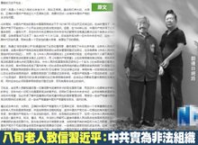 2016-06-30 20:31:57明天就是七月一日,是中共建黨日,不過,最近幾年,「七一」卻越來越讓中共尷尬,有人在這一天遊行抗議、有人退黨、有人給中共「送花圈」,而更多的人公開探討中共的合法性。最近北京一位年過八旬的老人發出公開信,指出中共沒有經登記註冊是個非法組織,引發了外界關注。