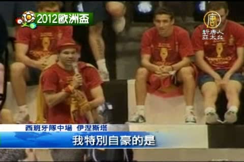 【新唐人亞太台2012年7月4日訊】奪得歐洲盃冠軍的西班牙國家足球隊星期一在馬德里舉行了盛大的慶祝遊行,場面歡騰,舉城狂歡。