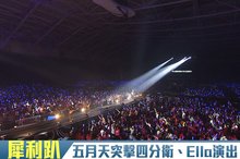 2015-08-10 20:48:36犀利趴第二天演出,原本就放話要突擊別組演出的五月天,團長怪獸在樂團四分衛演出時,以帥氣的吉他solo驚喜出場;而當Ella演出時,明明是貝斯手的瑪莎還用吉他為Ella伴奏助陣。