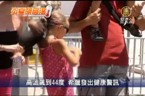 【新唐人亞太台2012年7月13日訊】在北半球各地熱浪頻傳之際,每年夏天氣溫原本就不低的南歐希臘,週四(12日)氣溫衝上攝氏44度,熱到希臘當局緊急呼籲民眾,為了身體健康、沒事,最好不要出門。