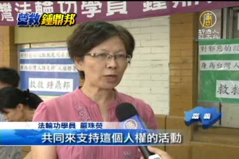 【新唐人亞太台2012年7月17日訊】台灣新竹科技公司經理、法輪功學員鍾鼎邦,遭中共拘捕已經一個月。台灣各地陸續發起「營救鍾鼎邦人權連署」,多位立委、縣市議員也加入連署聲援,並向政府喊話,必須盡速將台灣公民鍾鼎邦營救回台。