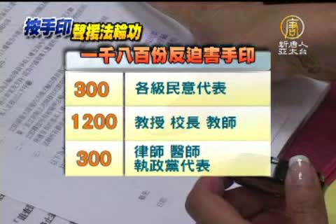 一千八百份反迫害手印,來自300位各級民意代表、1200位教授、校長、教師,還有超過300位律師、醫師與執政黨代表。連署信上要求,制止並調查活摘器官惡行,釋放所有被關押的法輪功學員,與法辦迫害元兇。