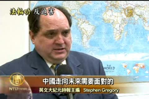 英文大紀元時報主編 Stephen Gregory:「我們看到﹐絕大多數政府不明白中國的核心問題在內部﹐尤其是對法輪功的鎮壓。這才是理解問題的核心﹐在中國發生了什麼﹐過去五個月在中國領導層發生了什麼變化﹐中國走向未來需要面對的。」