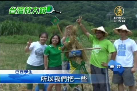異國學子下田野 體驗有趣紮稻草人