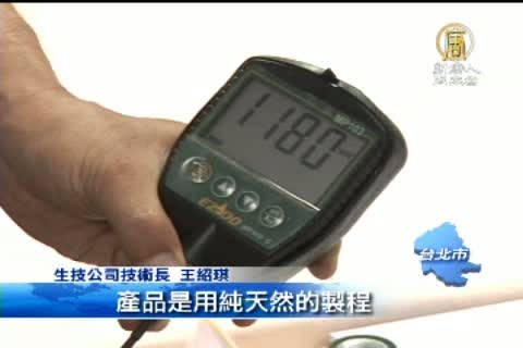 台灣生物科技再突破,現在有生技公司利用精密新科技,模擬大自然法則,製造安全無毒、高殺菌效果的殺菌劑。實際檢測,桌面上放著兩杯殺菌劑,一小時後,一般市售的殺菌劑,數值只有760,而生技公司的數值有1180,殺菌力明顯高出許多。
