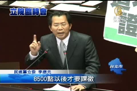 民進黨立委 李應元:「8500點以後才要課徵,這是全世界唯一偉大的發明,這算是證所稅嗎?根本是有名無實。」