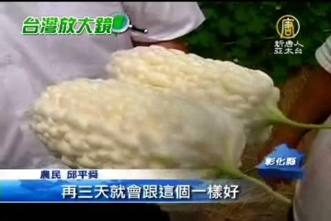 【新唐人亞太台2012年7月26日訊】炎熱的氣候,許多民眾選擇喝苦瓜湯來降火氣,而苦瓜就成了保健料理的食材之一。為了推廣農民種苦瓜,有正確的施肥觀念,台中區農業改良場,在彰化縣永靖鄉 辦理苦瓜合理化施肥示範成果觀摩會,讓農民了解到改善環境又能節省成本的施肥方法。