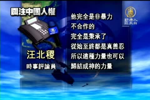 時事評論員汪北稷:「然而,到了99年開始,迫害法輪功之後,中共他失算了,因為法輪功這個團體,他反迫害的行為,他是非暴力的,他不是說去以牙還牙,或者是怎麼樣去暗殺呀,去綁架呀,去襲擊中共的政治機關,軍事機關,他完全是非暴力、不合作的,完全是秉承了從始至終都是真善忍,所以這種力量呢,也可以歸結成神的力量。」