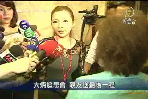 【新唐人亞太台2012年7月30日訊】藝人大炳20號在北京病逝,他的追思會今天上午在台北舉行,除了大炳的親人,不少藝人朋友都出席,包括生前恩師王偉忠、前經紀人沈玉琳,以及演藝圈好友大小S、阿雅、黑人、等人都出席,前行政院長謝長廷也到場。在追思會上大小S、阿雅在台上致詞時,回憶起與大炳在學校相處的往事,三人忍住悲傷,甚至還搞笑演出大炳生前的特技「吞拳頭」。