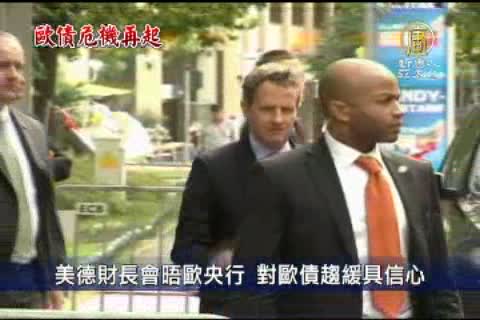 【新唐人亞太台2012年7月31日訊】星期一,美國財政部長蓋特納出訪德國,分別與德國財政部長蕭伯樂以及歐洲央行行長德拉吉進行會談,商討全球經濟以及歐債危機等問題。
