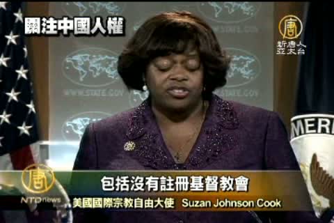 美國國際宗教自由無任所大使 Suzan J. Cook:「政府濫用法律﹐來壓制信仰﹑言論和集會自由。中國壓制很多信仰團體﹐包括沒有註冊基督教會﹐維吾爾穆斯林﹐藏傳佛教徒﹐和法輪功修煉者。」