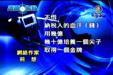 網絡作家 荊楚:「這個專制國家,它本來是一個弱國,要打腫臉充胖子。不惜納稅人的血汗(錢),用幾億,幾十億培養一個尖子,取得一個金牌。這叫做競技的全民體育。這個競技體育為了拿金牌,為了達到目的不擇手段,這樣的體育已經和體育精神背道而馳了。」