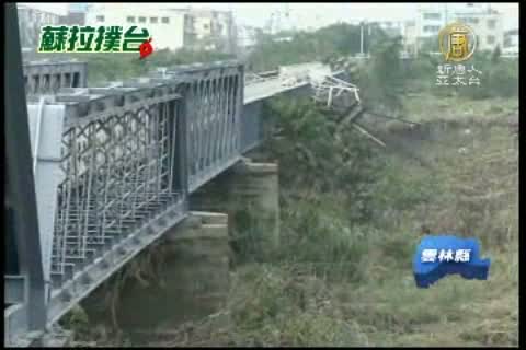 【新唐人亞太台2012年8月3日訊】受到蘇拉颱風所帶來的豐沛雨量影響,跨越雲林縣北港溪、被列為歷史建物的虎尾糖廠鐵橋,昨天下午被溪水衝斷。虎尾糖廠鐵橋建於1907年,前年才修復完成,如今鐵橋遭沖斷,地方民眾都覺得萬分不捨,希望能儘快修復。