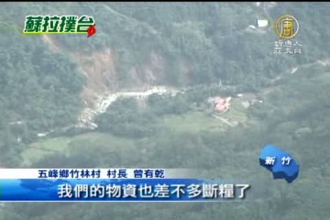 五峰鄉竹林村村長 曾有乾:「重要的道路全部都中斷,我們的物資也差不多斷糧了,辦喪事的沒有辦法出殯,我們已經4天沒有出去了,連走路都不能走,希望長官盡量給我們處理這個事情。」