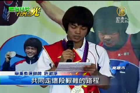 【新唐人亞太台2012年8月14日訊】獲得奧運舉重銀牌的許淑淨,今天(14日)下午回到母校高雄正修科技大學,受到英雄式熱烈歡迎,校方特別頒贈專任運動教練預聘書;許淑淨說,希望還有機會能在奧運殿堂更上一層樓,未來四年,在學校老師及教練的支持下,要繼續朝下一屆巴西里約奧運邁進。