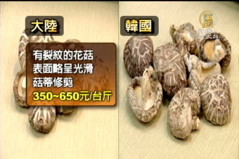 【新唐人亞太台2012年8月16日訊】這幾年花菇幾乎都是由國外進口,但有不肖業者看準韓國花菇價格高,竟然用低價的中國花菇冒充闖關,一名進口商昨天返抵桃園機場就被逮捕,估計不法獲利超過1.2億元,而北市迪化街乾貨業者就說,中國花菇香味較淡,菇蒂通常會剪掉,韓國花菇香味較濃郁,菇蒂會保留,購買時可得睜大眼睛。