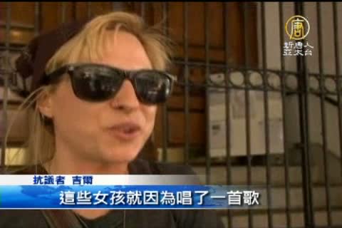 抗議者 吉爾:「我只是想,引起更多對這件事,對俄羅斯的關注,希望(俄羅斯)他們會清醒過來,可能會說‘嘿,這事做得不好,這事做得不好’。你知道嗎,這些女孩就因為唱了一首歌就被送進監獄?」