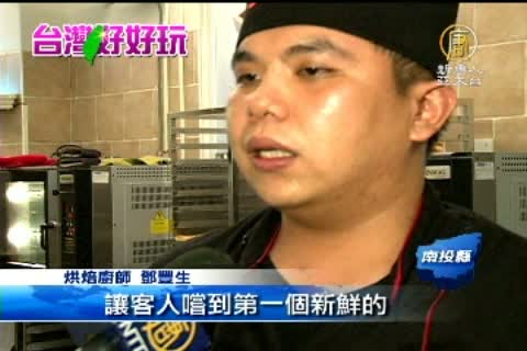 【新唐人亞太台2012年8月21日訊】鏡頭來到南投。以歐式風格建築及戶外大型西洋棋,再加上各式現場烘焙的喜餅、蛋塔跟現切的牛軋糖,業者希望迎合民眾口味,開發觀光市場好商機。
