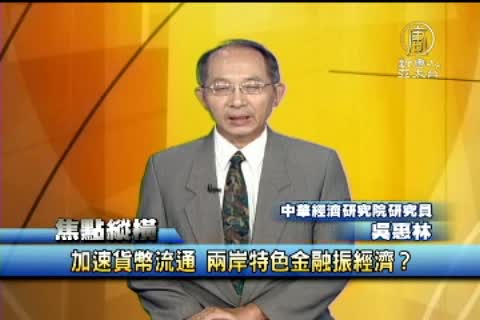 【新唐人亞太台2012年8月21日訊】行政院長陳冲今天與副院長江宜樺,邀集八大官股行庫等超過40家金融機構,召開閉門會議,討論「發展兩岸特色」的金融業務;這裡面還包含了:在建立兩岸貨幣清算機制的前提下,加速建立開放台灣發行金融卡,能夠在大陸ATM消費刷卡的配套。究竟發展這個被叫做『兩岸特色』的金融業務,是不是能重振台灣經濟?兩岸貨幣流通,還有哪些方面我們應該注意?今天的焦點縱橫,為您探討。
