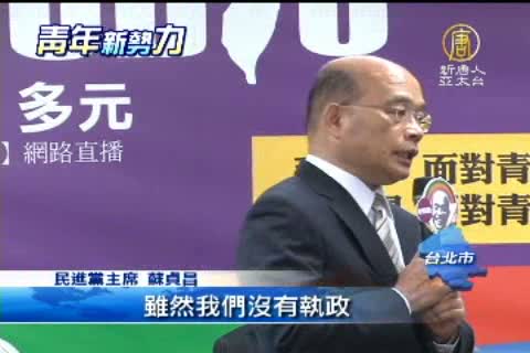 【新唐人亞太台2012年8月21日訊】不只在運動界,台灣青年世代的整體競爭力,都需要 投以更多的關注。民進黨今天(21)啟動為期兩個月的系列研討會,首場座談,主題鎖定在青年就業議題。黨主席蘇貞昌表示,政府執政四年多以來,沒有提出及時、有效的青年政策,年輕人面對未來大多感到茫然,因此邀請專家學者研擬方案,在立院下會期開議前提出具體對策。