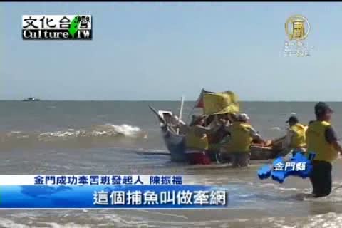 【新唐人亞太台2012年8月23日訊】牽罟是一種古老的捕漁方式,已經不太容易見到。在政府的輔導下,金門縣成功村民成立了牽罟班,除了偶爾嘴饞出海捕漁外,現在更成了金門推廣休閒觀光漁業的新亮點。