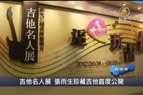 【新唐人亞太台2012年8月24日訊】吉他,是許多愛好音樂者的入門樂器之一,台中一家百貨業者舉辦吉他名人展,展出100把音樂人珍藏的吉他,還包括已故創作歌手張雨生生前最愛的3把吉他,首度公開展出,吸引不少民眾參觀,重溫美好的音樂年代。
