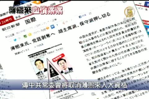 時事評論員 邢天行:「對於薄熙來他這一次,肯定是要被免去作為人大代表的這個資格,再這個下一步,在政治局開除黨籍,開除黨籍一般也就是意味著,在下一步就進行法律上的追究了。」