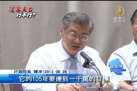 行政院長 陳冲:「每年都破一個百萬的門檻,它的105年要達到一千萬的目標,應該是可以達成」(2012.08.28 )