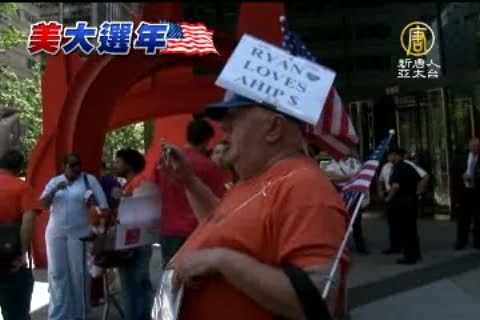 【新唐人亞太台2012年8月31日訊】8月30日晚,美國共和黨總統候選人羅姆尼在佛州坦帕的共和黨大會上發表了接受總統候選人提名的演講,就在這次被視為羅姆尼選戰中最重要的講話發表之前,包括曾為羅姆尼工作的工人在內的一群紐約民眾卻聚集在羅姆尼創建的一家公司外,表達他們的反對意見。