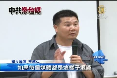 獨立導演 李惠仁:「媒體老闆為了利益不敢去碰這個部分,不敢碰法輪功 不敢碰旺中,那接下來呢?如果每個媒體都是這樣子退讓,每個記者都不斷退讓,那請問一下接下來賣掉的是甚麼?你把你的靈魂全部賣掉。」