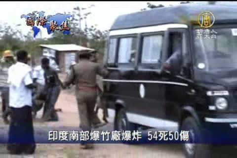 【新唐人亞太台2012年9月6日訊】星期三中午,印度南部坦米爾那都省的一間爆竹工廠發生爆炸。造成超過50人喪生。據了解,由於爆竹工廠工人在混入化學原料時,並未嚴格遵循安全守則,因而引發悲劇。