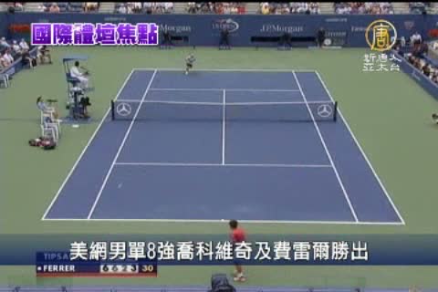 【新唐人亞太台2012年9月7日訊】美網男單最後2場8強賽事,喬科維奇面對強敵德波展現強悍氣勢,直落三闖進4強;費瑞爾則與提普塞拉維奇激鬥4個半小時,最終5盤逆轉獲勝。