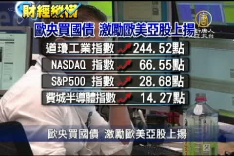 【新唐人亞太台2012年9月7日訊】歐洲央行週四(6日)宣布,將重新開始購買負債沈重的歐元區成員國的短期政府債券,希望能夠降低西班牙和義大利等國的借貸成本。並且宣布,將「不限金額」直接購買歐元區困難國家公債,此話一出,剌激全球股市大漲,不過,相較於其他國家股市都漲了2%至3%左右,台北股市今天只小漲了1.4%,行政院長陳冲表示,影響股市因素很多,還必須審慎觀察分析。