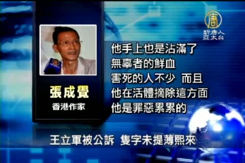 香港作家、自由撰稿人 張成覺:「嚴格說起來,王立軍這樣的人應該是死有餘辜,應該是處死的,他手上也是沾滿了無辜者的鮮血,害死的人不少,而且,他在『活體摘除』這方面,他是罪惡累累的,他還在學術上,有研究就是寫論文,簡直傷天害理到極點了。」