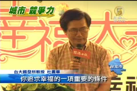 【新唐人亞太台2012年9月10日訊】GDP成長,常常被用來評斷一個國家的競爭力,不過,聯合國今年起開始推行「美好生活指數」評比,除了經濟力之外,一個國家人民的幸福力有多高,也是進步 指標。平面媒體邀集學界、企業界合作進行的幸福感調查,編製出台灣版的幸福指數。結果,新竹市拔得頭籌,榮登最幸福縣市。令人意外的是,五都當中,竟然只 有台北市擠進前十名。