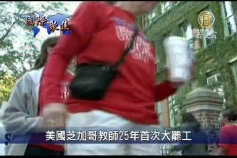 【新唐人亞太台2012年9月11日訊】美國芝加哥公立學校教師星期一(10號)展開25年來的首次大罷工,大約2萬9千名教師參加這次罷工,影響範圍從幼稚園到高中大約共有35萬名學生。芝加哥是全美第三大學區,正面臨成為三年內減少赤字30億美元預算的目標,由於即將在11月舉行總統選舉,使得這次罕見的教師大罷工成為敏感的政治話題。