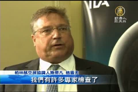 【新唐人亞太台2012年9月11日訊】鏡頭轉到歐洲,一年一度的柏林國際航空展即將登場,這次航空展將有來自46個國家的超過1200個展商,確保維安工作,成為主辦單位的首要任務。