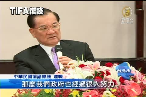 中華民國前副總統 連戰:「TIFA問題主要癥結是在美牛輸入議題,那麼我們政府也經過很大努力。那麼所以因此我們,特別提出來恢復TIFA議題,也得到善意回應。」