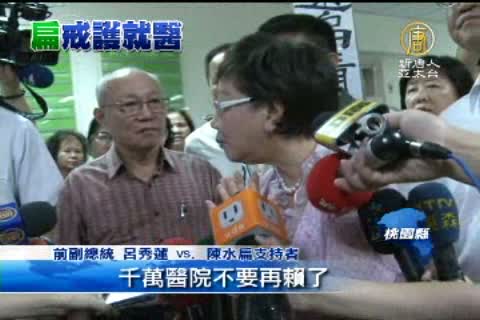 前副總統 呂秀蓮 V.S. 陳水扁支持者:「千萬醫院不要再賴了,不需要在這裡,現在有給他治療了,你們在這邊也很辛苦,(保外就醫,保外就醫)」