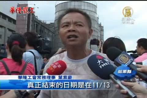 華隆工會常務理事 葉紫慶:「今天拆這個罷工架,不表示我們華隆罷工已經結束了,我們只是照契約在走,真正結束的日期是在11/13,如果11/13紡安的支票跳票的話,我們下 一步一定會做得比這一波更大的罷工。」