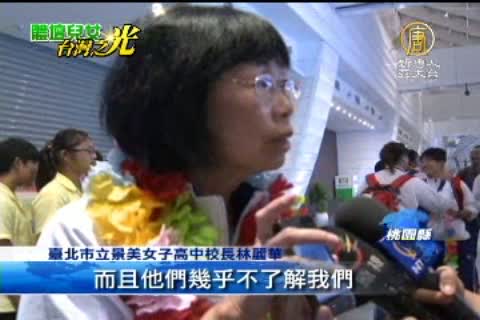 臺北市立景美女子高中校長 林麗華:「你看他們給我們的隊旗是錯的,而且他們幾乎不了解我們,連我們是中華台北(CHINESE TAIPEI)他都講成中國台北(CHINA TAIPEI)。」