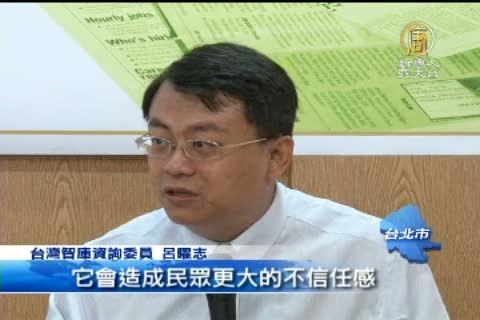 【新唐人亞太台2012年9月17日訊】在野黨提倒閣,台灣智庫今天(17日)公布最新的民情調查,民眾對於行政院長陳?的不滿意度,比起七月份的40.1% ,又攀升了將近14個百分點,達到53.3%。對於整個內閣團隊的整體表現,也有高達六成的受訪者認為,內閣需要改組。