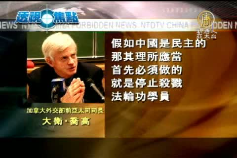 加拿大外交部前亞太司司長 大衛‧喬高:「任何不是自由選舉出的政府都是非法的,我們希望看到中國,能向122多個(民主)國家那種方向發展。假如中國是民主的,那其理所應當首先必須做的,就是停止殺戮法輪功學員。」