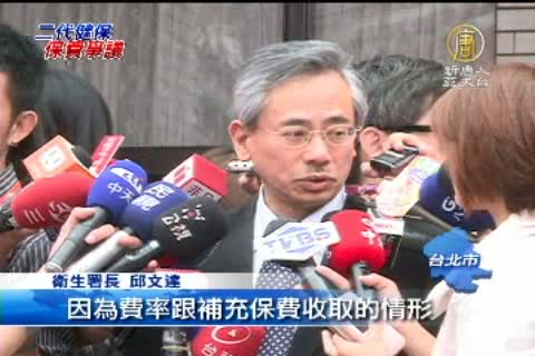 【新唐人亞太台2012年9月18日訊】明年即將上路的二代健保的補充保費,銀行存款利息超過2千就要多繳健保,引起民怨。衛生署長邱文達今天(18日)說,補充保費與二代健保費率,都還要再精算,至於甚麼時候會確定,目前沒有時間表。